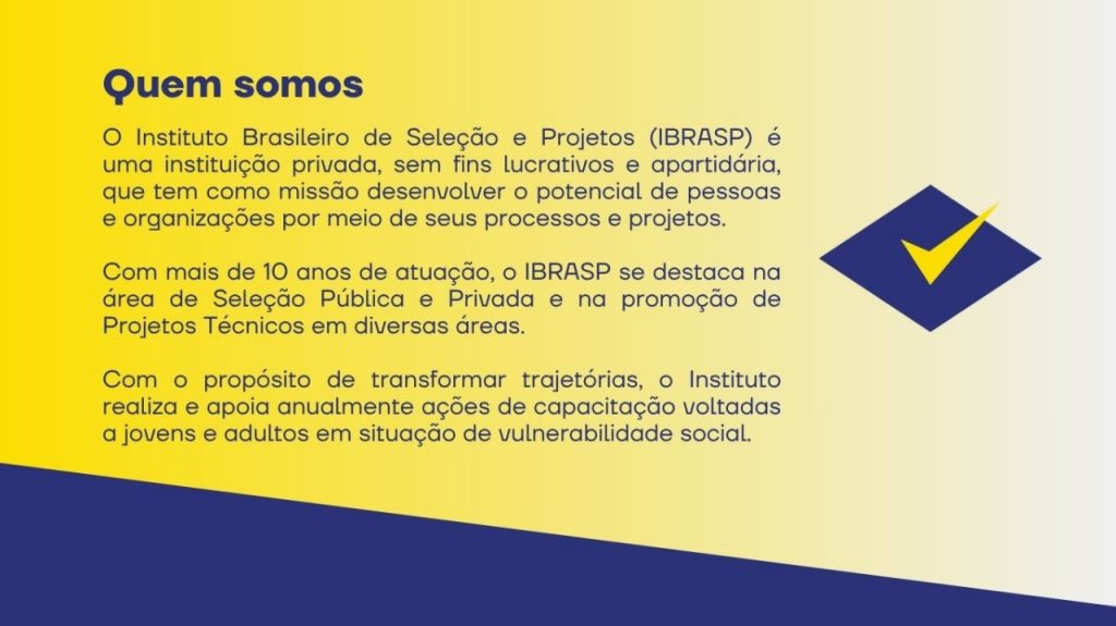 O IBRASP atua como banca organizadora de concursos públicos. Em consonância com os princípios da boa administração pública, está atento e pronto, não só com a segurança e eficiência de seus processos. Procura auxiliar municípios e organizações na fase anterior a elaboração do Edital, para o melhor alinhamento das necessidades de seleção, assim como apoiar posteriormente a organização dos chamados.